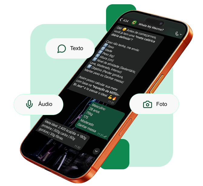 no WhatsApp, com acompanhamento diário, receitas inteligentes e controle real
